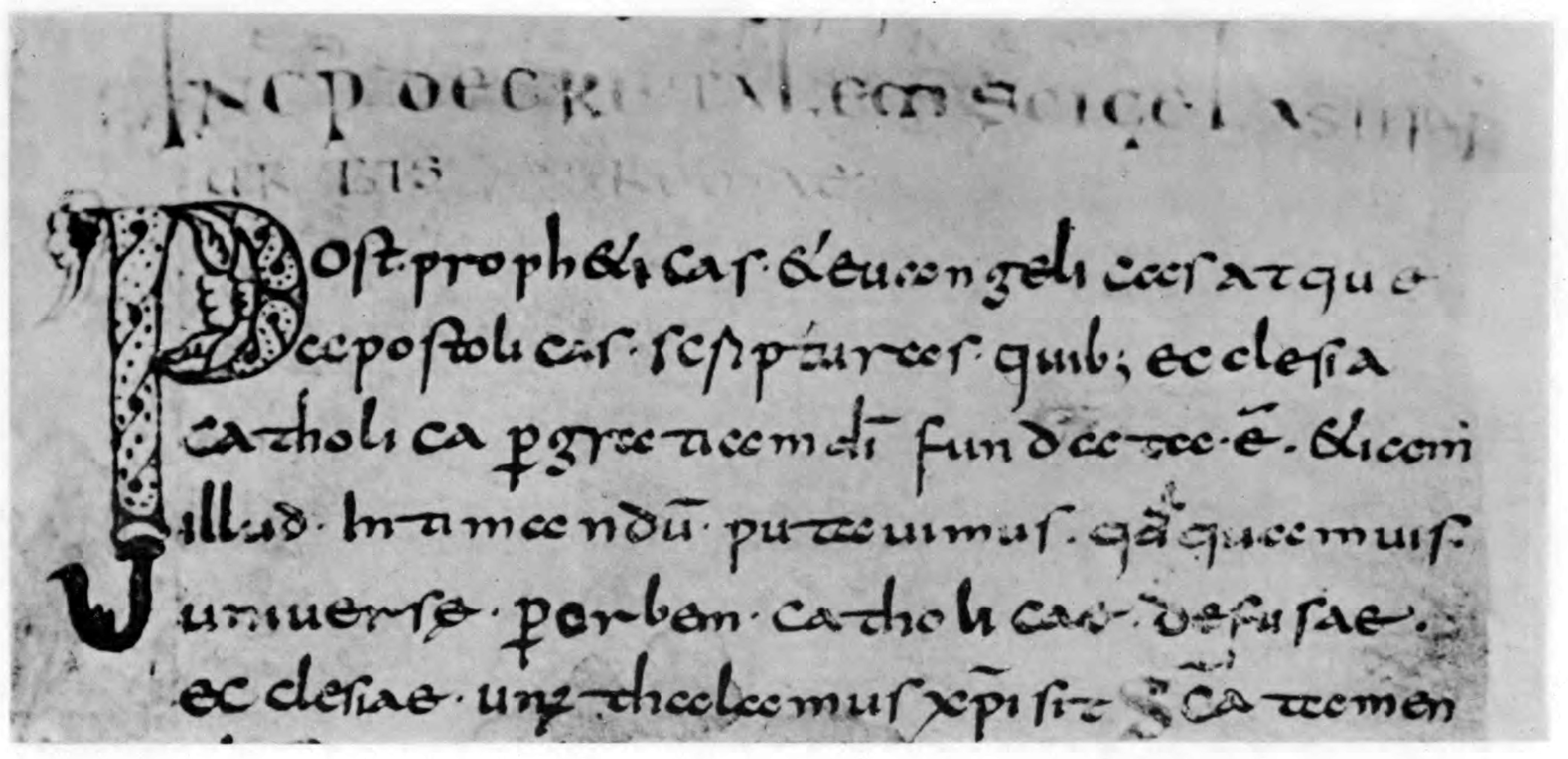 Origin uncertain, perhaps the area between France and Germany. These seven leaves are bound up with two fragmentary Sacramentaries of earlier date (see preceding items). Later at Lorsch; a list of Lorsch names saec. X is found on fol. 100v. |